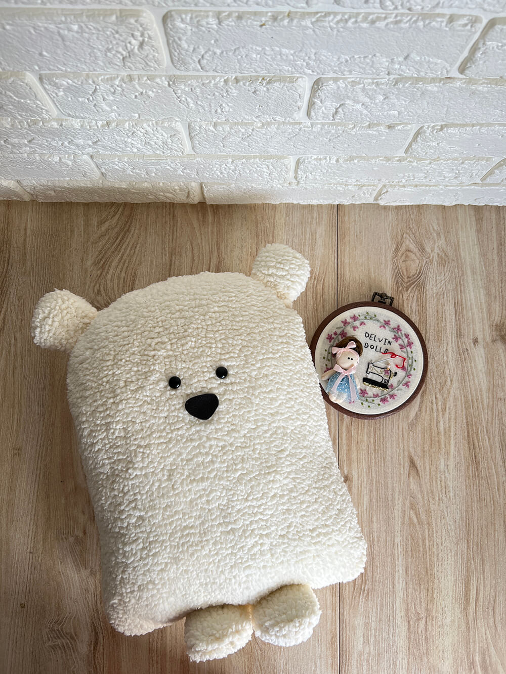 پارچهی استفاده شده در این کوسن عروسکی کودک از نوع تدی بسیار نرم و لطیف بوده و داخل آن با الیاف ضد حساسیت پر شده است؛ بنابراین بدون نگرانی میتوانید آن را کنار تخت، روی مبل کودک یا حتی در گهواره قرار دهید.